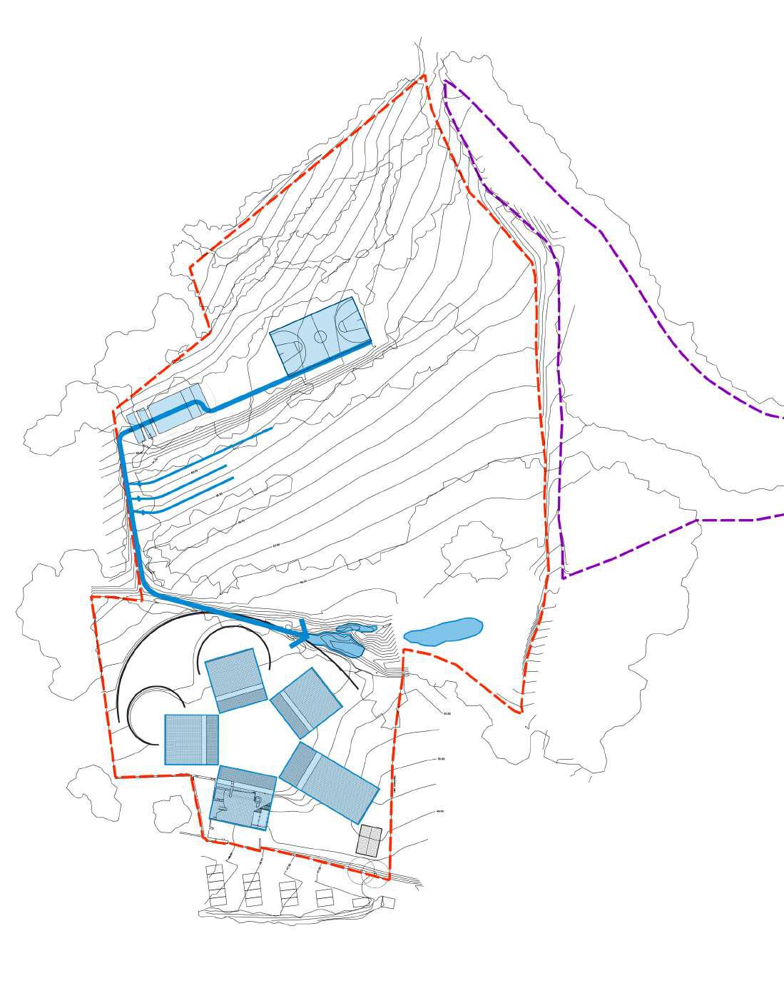 Quan plou, l’aigua no simplement es perd, sinó que es canalitza cap a basses i cunetes vegetades que actuen com a filtres naturals i zones d’infiltració. Aquestes basses estan dissenyades per encaixar en el paisatge, absorbint les pluges torrencials de manera que es redueixen riscos d’erosió i inundacions. A més, recollim l’aigua de les cobertes de l’escola per emmagatzemar-la en dipòsits soterrats, i així la podem utilitzar per al reg dels horts i dels boscos comestibles, reduint la dependència de fonts externes.