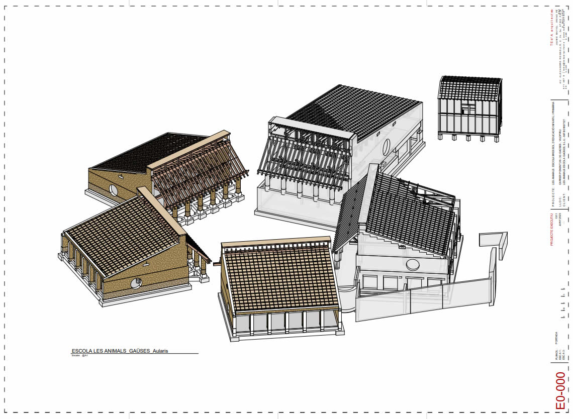 Les installations de Les Animals sont un exemple paradigmatique de bioconstruction appliquée à l'éducation. Ce projet architectural, développé par le studio TéD'A Arquitectes avec les conseils de Marboris Ville et Paysage, utilise des matériaux naturels et locaux tels que le bois local, la terre compactée (pisée), la céramique de La Bisbal et le liège des Gavarres.